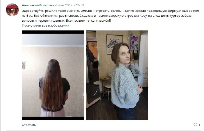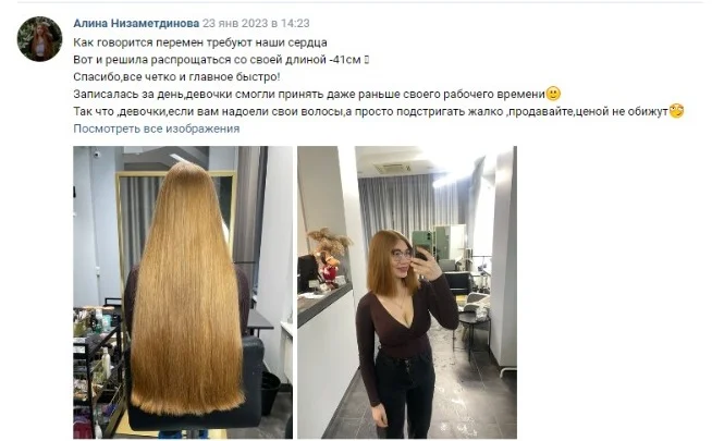 Если вы согласны на сделку, то мы приглашаем вас в салон на стрижку. Если вы срезали волосы самостоятельно, оформили и упаковали, то мы отправляем своего курьера.